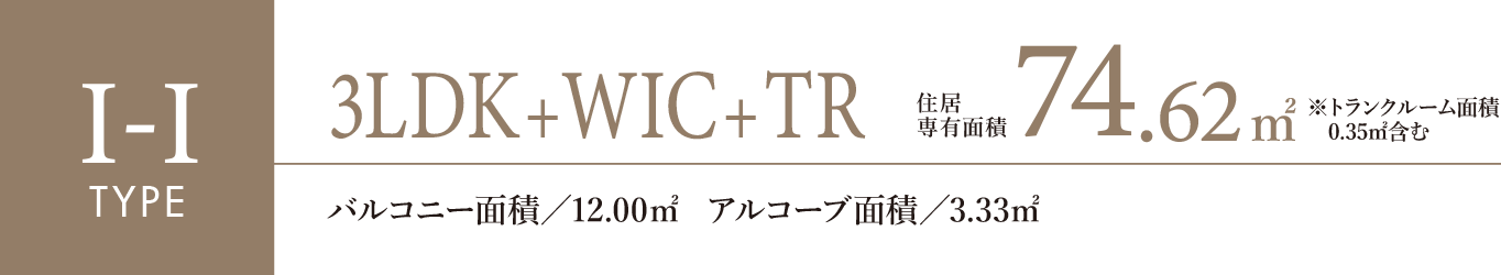 洋室1にはワードローブとしてのゆとりを備えたウォークインクローゼットをご用意。