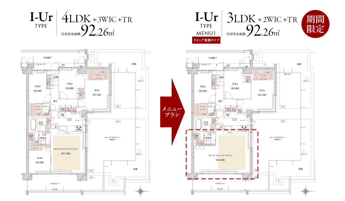 ※4:平均75㎡超とは、Ⅰ工区(214戸)の住居専有面積(トランクルーム面積含む)の平均値です。