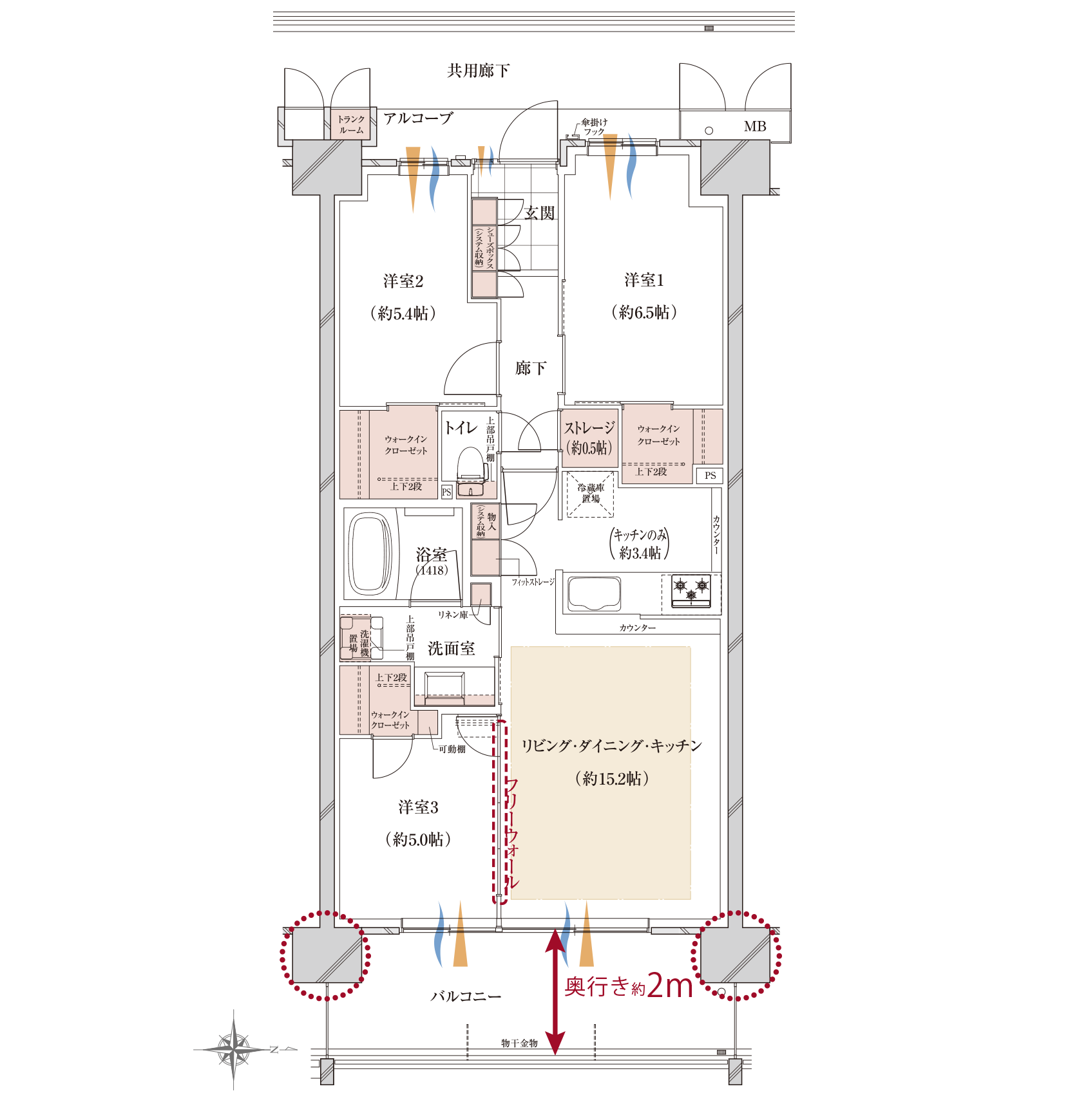 洋室はすべてウォークインクローゼット仕様。収納空間が豊富な3LDK。